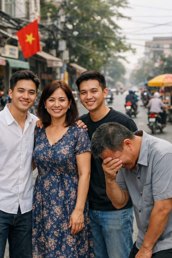 Hai cậu bé bước đến, đứng chắn trước mặt mẹ. Cả hai đều cao ráo, ánh mắt thông minh nhưng lạnh lùng lạ thường.