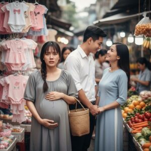 Gần sinh, vợ một mình đi sắm đồ cho con, nào ngờ lại thấy chồng đưa b//ồ đi chợ