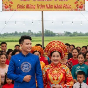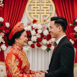 Bà ta mặc áo dài lụa đỏ, bàn tay đeo nhẫn vàng siết chặt tay tôi. “Từ giờ, cậu là chồng ta, Nam ơi,”