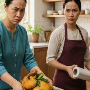Tôi vừa lúi húi nhấc con gà mới luộc ra, còn nóng hổi, đặt lên mâm để chuẩn bị bữa cơm chiều. Đúng lúc ấy, em chồng…