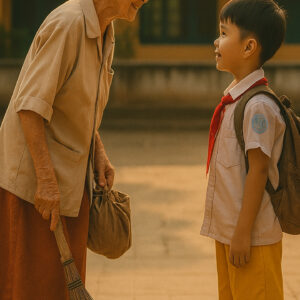 Bà lão lao công trường học thấy thương cậu học sinh nghèo hiếu học nên đã dùng số tiền ít ỏi của mình mua sách để chắp cánh ước mơ đến trường của cậu. Nhiều năm sau, cậu học trò năm nào quay lại trả ơn khiến ai nấy rơi nước mắt…