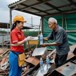 Giữa trưa nắng cháy da trên con đường nhuốm bụi công trình, chị Hương – công nhân xây dựng – lại trải tấm bạt nhỏ, ngồi ăn…