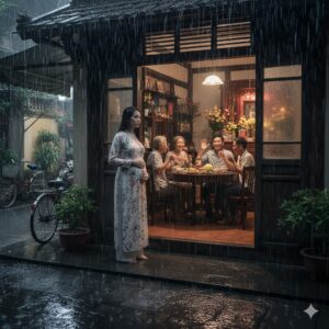 Tôi không ngờ mưa đêm lại có tiếng. Không phải tiếng rào rào như người ta vẫn nói trên phim, mà là một tầng tiếng mỏng như…