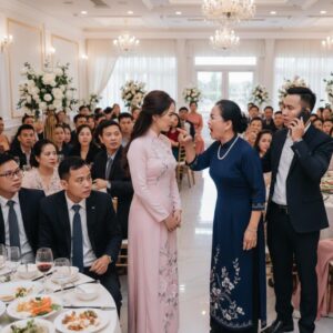 Mẹ chồng tôi – bà Hạnh – ngồi ở bàn chủ hôn, cổ đeo sợi dây chuyền kim cương lấp lánh. Đó là món bà khoe suốt mấy ngày nay, nói rằng “cả thành phố này không mấy người có được”.
