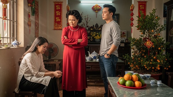Vợ chồng tôi cưới nhau 5 năm. Căn nhà 4 tầng ở quận Cầu Giấy này là của bố mẹ tôi để lại cho tôi trước khi kết hôn. Thế nhưng, từ ngày lấy Thành, mẹ chồng và cậu em chồng tên Tú mặc nhiên coi đây là “tài sản chung” của dòng họ nhà nội. Đêm 30 Tết, khi cả nhà đang quây quần bên mâm cơm tất niên, mẹ chồng tôi – bà Hiền – đặt đôi đũa xuống, hắng giọng: