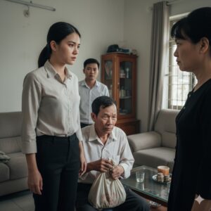 Hôm sau, tôi ra bến xe đón bố. Nhìn dáng ông gầy gò, tay xách chiếc túi vải bạc màu, lòng tôi nghẹn lại. Tôi vừa dắt bố vào nhà, mẹ chồng đã bước ra, gương mặt khó chịu: