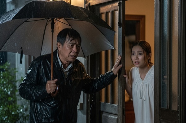 Ông Thành lại trùm áo mưa, lầm lũi bước ra khỏi cửa, biến mất vào màn đêm đen kịt.
