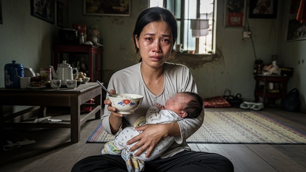 Câu nói của bà như gáo nước sôi tạt vào mặt Mai. Cô nín lặng, ôm chặt con vào lòng. Tuấn xách vali đi thẳng, không thèm nhìn con lấy một cái. Mẹ chồng cũng tót đi chúc Tết hàng xóm, bỏ mặc ngôi nhà lạnh lẽo cho hai mẹ con. Mùng 1 Tết trôi qua trong nước mắt. Cơm cữ chẳng có, Mai phải tự mình lê bước xuống bếp cắm cơm, luộc vội quả trứng gà. Mẹ chồng đi chơi tối ngày, về đến nhà là đóng cửa ngủ, mặc kệ cháu khóc ngằn ngặt.